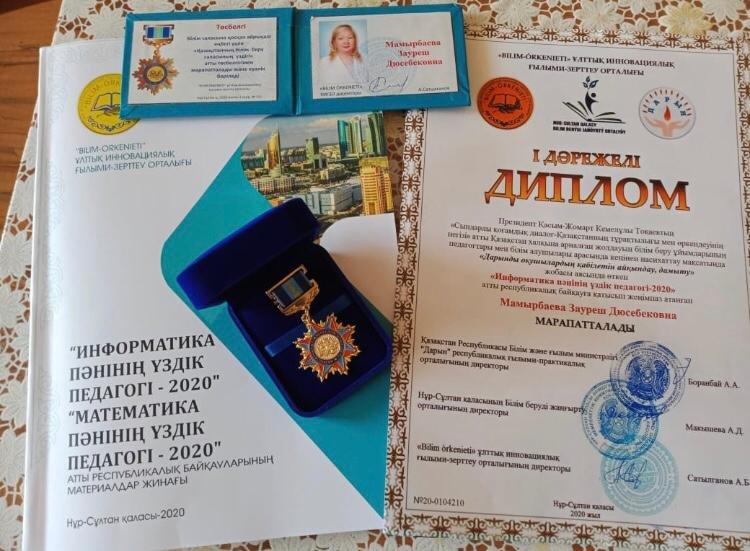 №1 Дінмұхамед Қонаев атындағы мектеп-гимназиясының ағылшын тілі пәнінің мұғалімі З.Т.Ильясбекова және информатика пәні мұғалімі З.Д.Мамырбаева қашықтықтан ұйымдастырылған "Үздік педагогі-2020" атты республикалық байқаудан 1 дәрежелі дипломмен және төсбелгісімен марапатталды. Сонымен қоса сабақ жоспарларыр еспубликалық байқауларының материалдар жинағына басылып шықты.