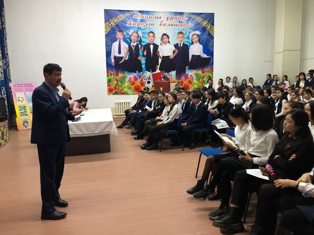 27 февраль 2020 0 1 2 3 4 5 Кәсіби бағдар №1 Дінмұхамед Қонаев атындағы мектеп-гимназиясына кәсіби бағдар бойынша оқушыларға мамандық таңдауда дұрыс бағыт беру мақсатында Алматы қаласынан ҚАЗАҚ ҰЛТТЫҚ АГРАРЛЫҚ УНИВЕРСИТЕТІНЕН мамандар келіп, үгіт насихат жүргізді.